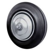 Колесо промышленное С92 предназначено для мусорных контейнеров, промышленного оборудования, платформенных тележек, лесов и строительных вышек-тур. Шинка выполнена из литой, черной резины. Колесо имеет стальной оцинкованный обод. В оси установлен роликовый подшипник. Отличается средней устойчивостью к воздействию химических веществ. Может передвигаться по грубой поверхности и эксплуатироваться в условиях влажной среды.