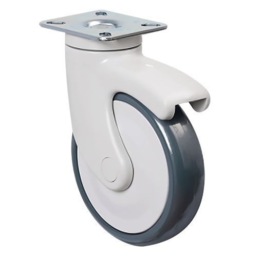 Аппаратное колесо EC01 MBT 125 предназначено для установки на медицинскую мебель, торговые тележки и другое передвижное оборудование, которое используется в условиях повышенных санитарных требований. Обод в модели изготовлен из прочного полипропилена, шинка — из серой резины. Диаметр колеса составляет 125 мм, максимальная нагрузка — 90 кг, температурный режим использования — от -20 до +60 °С .