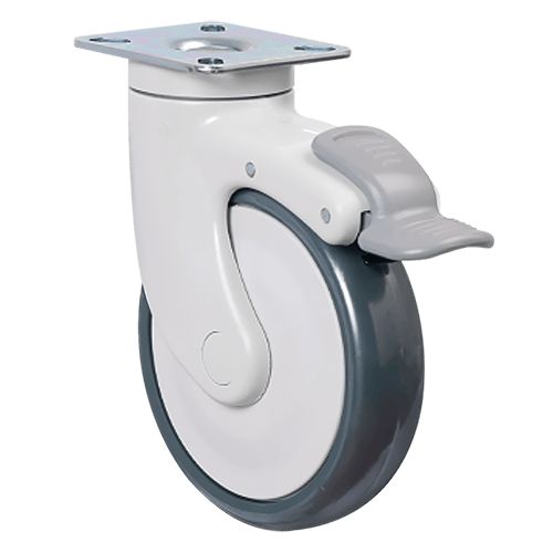 Аппаратное колесо EC01 MBT 125 F предназначено для установки на медицинскую мебель, торговые тележки и другое передвижное оборудование, которое используется в условиях повышенных санитарных требований. Обод в модели изготовлен из прочного полипропилена, шинка — из серой резины. Диаметр колеса составляет 125 мм, максимальная нагрузка — 90 кг, температурный режим использования — от -20 до +60 °С .
