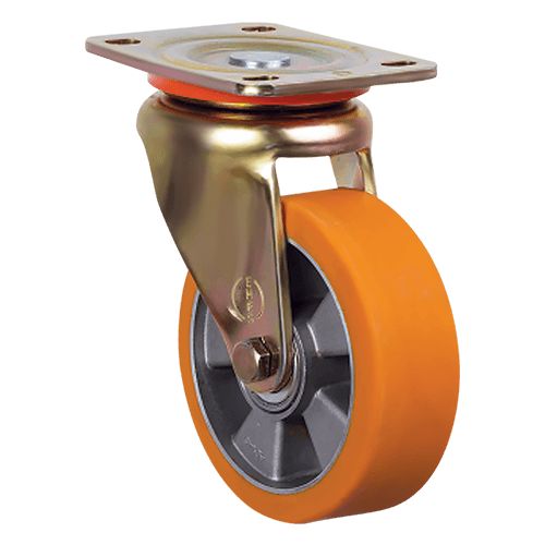 Большегрузное колесо EMES ED01 ABP 100 — это прочное долговечное изделие, для производства которого используются качественные износостойкие материалы. Обод выполнен из алюминия, защищенного от коррозионных изменений. Для изготовления шинки был выбран полиуретан — благодаря этому колесо не боится механических повреждений, не оставляет следов на поверхностях и хорошо поглощает вибрации. Широкий обод равномерно распределяет даже экстремальные нагрузки.