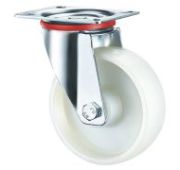 Данное сдвоенное большегрузное колесо предназначено для установки на медицинскую мебель и другое оборудование, используемое в условиях строгих санитарных требований. Конструкция с двумя колесами обеспечивает повышенную устойчивость и равномерное распределение нагрузки. Изготовлено из прочного нейлона, устойчивого к воздействию влаги и химических средств. Допустимая нагрузка составляет 1400 кг.