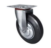 Аппаратное колесо EM01 MBT 100 предназначено для установки на торговое оборудование, больничную мебель, медицинскую аппаратуру и т. п. Шинка выполнена из серой резины, кронштейн — из оцинкованной стали, а обод — из полипропилена. Колесо имеет диаметр 100 мм, ширину обода 32 мм и работает в температурном диапазоне от -20 до +60 °С. Грузоподъемность модели — 80 кг.
