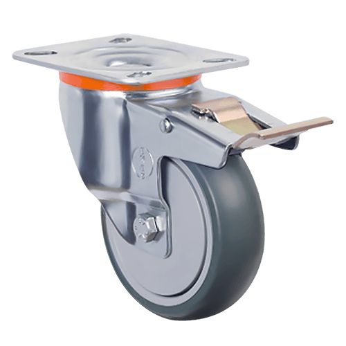 Аппаратное колесо EM01 MBT 100 F предназначено для установки на торговое оборудование, больничную мебель, медицинскую аппаратуру и т. п. Шинка выполнена из серой резины, кронштейн — из оцинкованной стали, а обод — из полипропилена. Колесо имеет диаметр 100 мм, ширину обода 32 мм и работает в температурном диапазоне от -20 до +60 °С. Грузоподъемность модели — 80 кг.