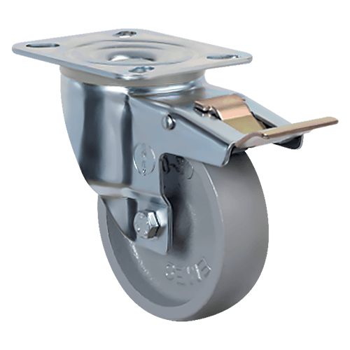 Колесо EMES EM01 VKV 80 F устанавливается на передвижное оборудование, которое используется при высоких температурных режимах. Устойчиво к осевым и радиальным нагрузкам, имеет высокую несущую способность. Изготовлено из высокопрочного чугуна, поворотный кронштейн с тормозом — из оцинкованной стали. Не рекомендуется к использованию на полах из хрупких материалов.