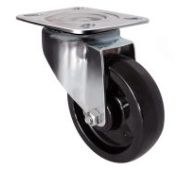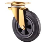 Аппаратное колесо EM04 MBT 100 предназначено для установки на торговое оборудование, больничную мебель, медицинскую аппаратуру и т. п. Шинка выполнена из серой резины, кронштейн — из оцинкованной стали, а обод — из полипропилена. Колесо имеет диаметр 100 мм, ширину обода 32 мм и работает в температурном диапазоне от -20 до +60 °С. Грузоподъемность модели — 80 кг.