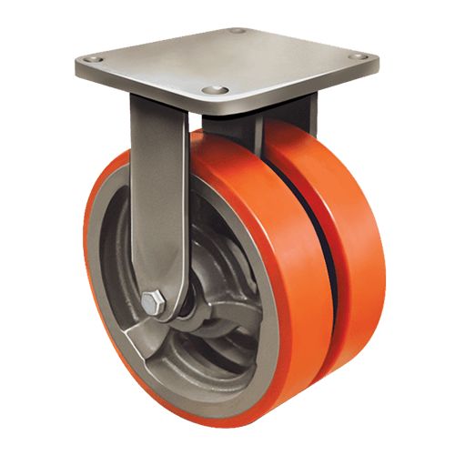 Сдвоенное неповоротное колесо EMES EW02 VBP 350 имеет диаметр 350 мм, способно выдерживать супернагрузки — максимальная грузоподъемность составляет 4800 кг. Модель станет отличным выбором для установки на тяжелое складское, промышленное и строительное оборудование, платформенные тележки.