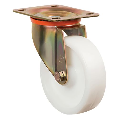 Большегрузная поворотная колесная опора EZ01HBZ100 рассчитана на серьезные эксплуатационные нагрузки, выдерживает до 250 кг. Колесо выполнено из нейлона, кронштейн — из оцинкованной стали. Модель рекомендуется для установки на передвижное оборудование, используемое в пищевой и химической промышленности, где важны стойкость к агрессивным средам и легкость санитарной обработки. Температурный режим эксплуатации составляет от -20 до +70 °С.