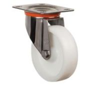 Неповоротное большегрузное колесо EZ02HKZ150INOX изготовлено из прочного нейлона, что обеспечивает стойкость к воздействию различных химических веществ и влаги, позволяет выдерживать высокие нагрузки без деформации. Максимальная грузоподъемность модели составляет 350 кг. Кронштейн из высококачественной нержавеющей стали устойчив к коррозии.