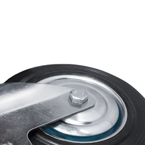 Колесо промышленное поворотное с тормозом SCB55 предназначено для мусорных контейнеров, промышленного оборудования, платформенных тележек, лесов и строительных вышек-тур. Шинка выполнена из литой, черной резины. Колесо имеет стальной оцинкованный обод. В оси установлен роликовый подшипник. Кронштейн с платформенным креплением изготовлен из оцинкованной стали. Отличается средней устойчивостью к воздействию химических веществ. Может передвигаться по грубой поверхности и эксплуатироваться в условиях влажной среды.