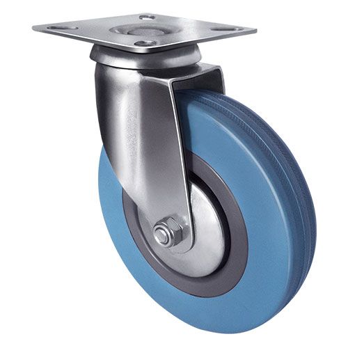 Колесо аппаратное поворотное SCg 42 предназначено для легкого торгового, лабораторного, медицинского, гостиничного, офисного и складского оборудования. Шинка выполнена из термопластичной серой резины. В оси установлен подшипник скольжения. Кронштейн с платформенным типом креплением изготовлен из оцинкованной стали. Полипропиленовый обод закрыт стальными кожухами. Не оставляет следов на напольных покрытиях. Отличается хорошими ходовыми качествами, повышенной маневренностью, низким уровнем шума, устойчивостью к внешним химическим воздействиям. Диапазон температур — от -35ºC до +60ºC.