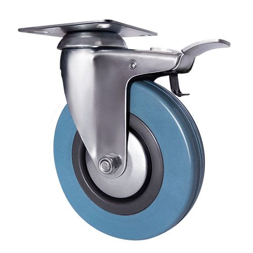 Колесо аппаратное поворотное с тормозом SCgb 25 предназначено для легкого торгового, лабораторного, медицинского, гостиничного, офисного и складского оборудования. Шинка выполнена из термопластичной серой резины. В оси установлен подшипник скольжения. Кронштейн с платформенным типом креплением изготовлен из оцинкованной стали. Полипропиленовый обод закрыт стальными кожухами. Не оставляет следов на напольных покрытиях. Отличается хорошими ходовыми качествами, повышенной маневренностью, низким уровнем шума, устойчивостью к внешним химическим воздействиям. Диапазон температур — от -35ºC до +60ºC.