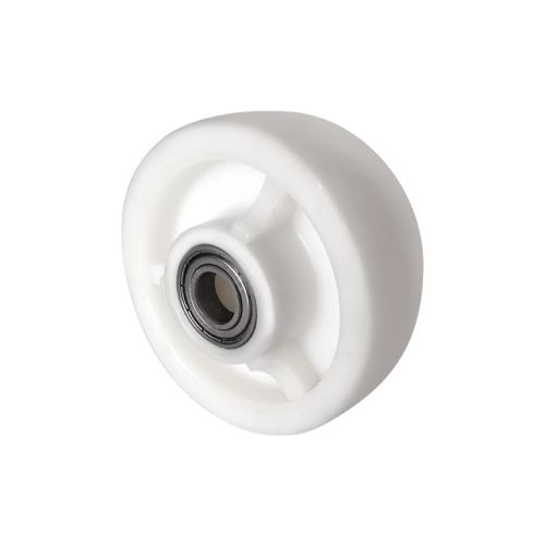 Данное большегрузное нейлоновое колесо предназначено для установки на передвижное оборудование, используемое в пищевой, химической и фармацевтической промышленности. Оно не боится воздействия влаги и различных химически агрессивных веществ, отличается низким коэффициентом трения и высокой износостойкостью. Шариковый подшипник в оси обеспечивает плавное вращение. Модель выдерживает нагрузку до 750 кг, тип крепления — на ось.