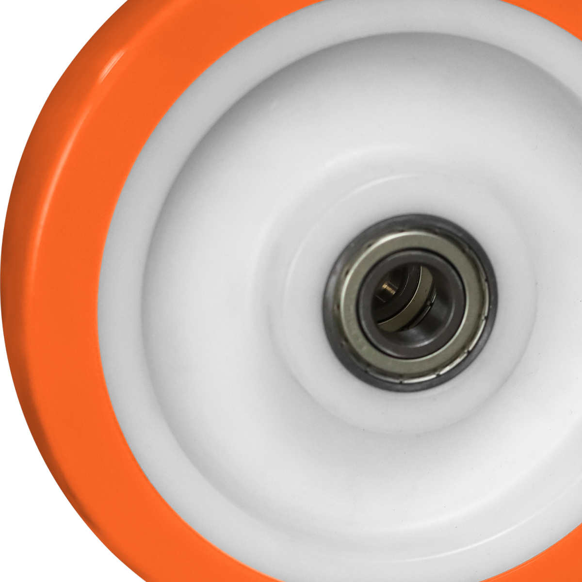 RONEL NPU 200 — это большегрузное колесо, предназначенное для эксплуатации в тяжелых условиях. Его обод выполнен из белого полиамида (нейлона) повышенной прочности, что обеспечивает колесу стабильность формы и высокую жесткость. Контактный слой из устойчивого к износу полиуретана гарантирует отличное сцепление с разными поверхностями и демонстрирует отличную сопротивляемость порезам и абразивному истиранию. В ступице — шариковый подшипник, обеспечивающий плавность хода.