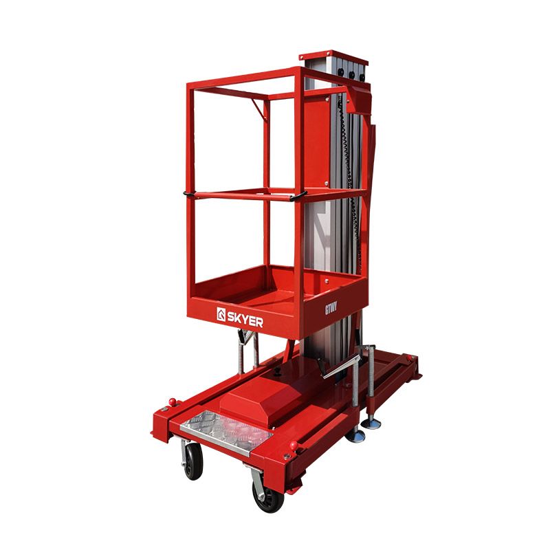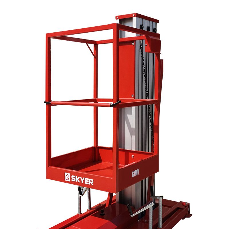 - Алюминиевая телескопическая мачта обеспечивает плавный и безопасный подъем. Материал легкий, но очень прочный — подъемник прослужит долго даже при интенсивном использовании.