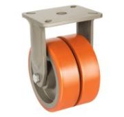Сдвоенное поворотное колесо с тормозом EMES Сдвоенное большегрузное колесо EJ01 VBP 200F-60 выдерживает экстремальные нагрузки, максимальная грузоподъемность составляет 2000 кг. Кронштейн в модели усиленный, выполнен из толстолистовой стали, размер платформы для крепления составляет 140x175 мм. Чугунный обод шириной 60 мм хорошо распределяет нагрузку. В оси и поворотном узле предусмотрены надежные шариковые подшипники. Рабочий температурный диапазон — от -20 до +70 °С.