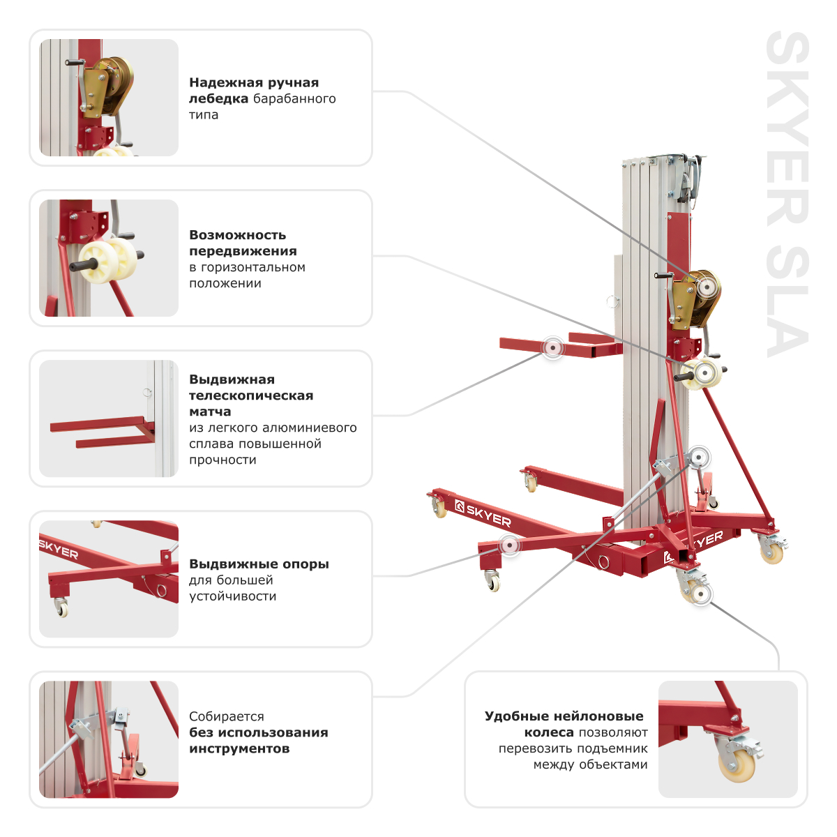 Телескопический подъемник для материалов SKYER SLA-15 — поднимет 350 кг без электричества!